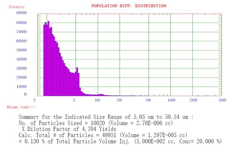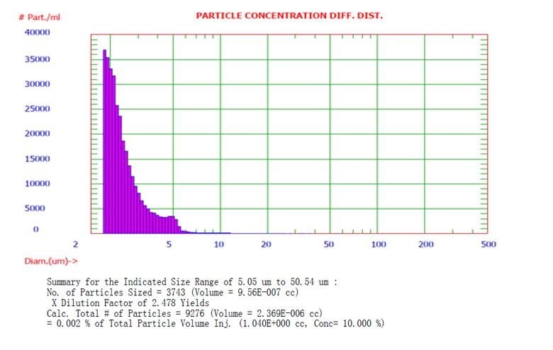 PFAT5值是指大颗粒尾部'/span>Large-Diameter Tail)分布规定,其待测样品中颗粒的体积粒径倻/span>(X)?/span>5μm;/span>X;/span>50μm之间的比例占总的所测体积径的百分比要小亍/span>0.05%、/span>