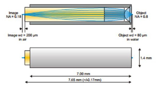 应用:活体内部显微术,荧光显微学,组织成像,灵活的荧光显微学,数值孔径转换、/span>
