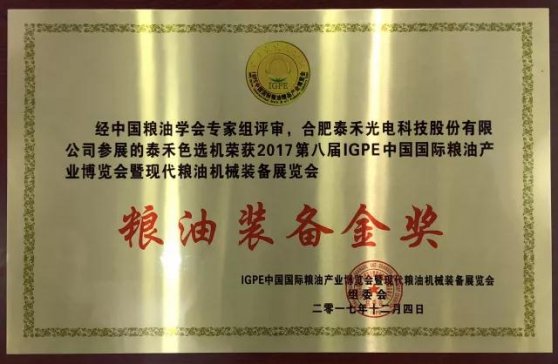 12?日,2017第八届IGPE中国国际粮油精品产业博览会暨现代粮油机械装备展览会(第八 IGPE 中国粮油精品展)在中国 北京· 中国国际展览中心拉开帷幕。经过层层评选,“泰禾”牌智能色选机在众多产品中脱颖而出,荣莶/p>2017?2?5?nbsp;更新
