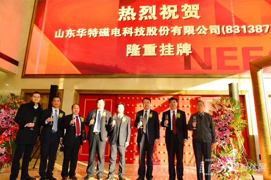 12?日上午,山东华特磁电科技股份有限公司“新三板”挂牌仪式在全国中小企业股份转让有限责任公司隆重举行。潍坊市金融工作办公室副主任张新华、临朐县委常委、常务副县长衣利民、临朐县金融工作办公室主任高凌利、临朐县城关街道党工委书记沈明新、临朐县东城街道党工委书记孙传坤、山东华特磁电科技股份有限公司董事长王兆连及公司股东和高管、临朐县相关企业负责人出席本次挂牌仪式、br />
