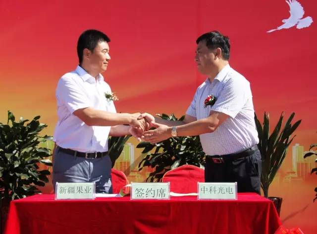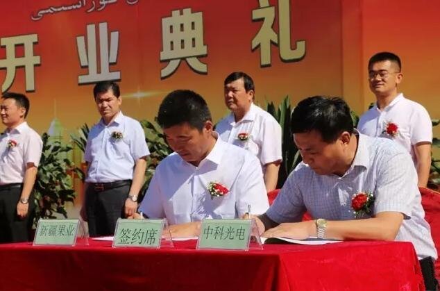 签约后,吐鲁番市副市长肖建武、自治区供销社主任张铭公、新疆果业集团有限公司董事长苑振廷,安徽中科光电色选机械有限公司董事长段启掌等参会主要领导共同按动LED启动球,众多参会代表见证了这一重要时刻、/p>