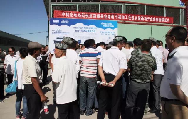 典礼结束后,自治区供销社主任张铭公,新疆果业集团有限公司董事长、总经理苑振廷,安徽中科光电色选机械有限公司董事长段启掌,高昌区主要领导,吐鲁番市、高昌区相关部门主要负责人,以及相关人员还现场观摩了葡萄干光电色选设备和基地葡萄干初级加工生产车间,现场色选演示从色选功能、色选效益、色选效果全方位展示,热闹非凡、/p>