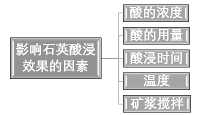 酸浸是利用石英不溶于酸(HF除外),其他杂质矿物能被酸液溶解的特点,从而可以实现对石英的进一步提纯。酸浸常用酸类有硫酸、盐酸、硝酸和氢氟酸等;还原剂有亚硫酸及其盐类等、/p>