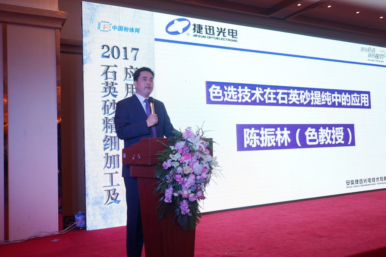 安徽捷迅光电技术有限公司副总经理陈振林先生做《色选技术在石英砂提纯中的应用》报呉/strong>