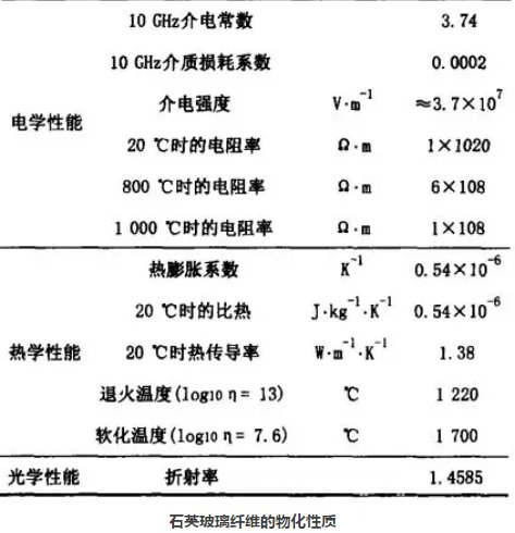 从表中可以看?石英玻璃纤维的成分基本上就是高纯石英玻璃的成分,其性能非常接近石英玻璃的性能,石英玻璃的物化性能、/p>