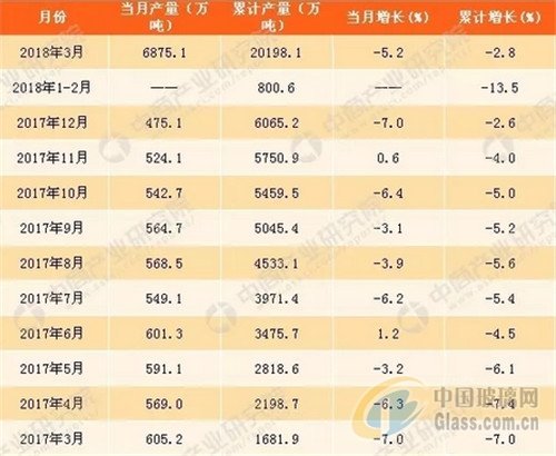中国粉体网讯2018?-3月中国平板玻璃产量为6875.1万重量箱,同比下?.2%?018年一季度中国平板玻璃产量?0198.1万重量箱,累计下?.8%、/p>