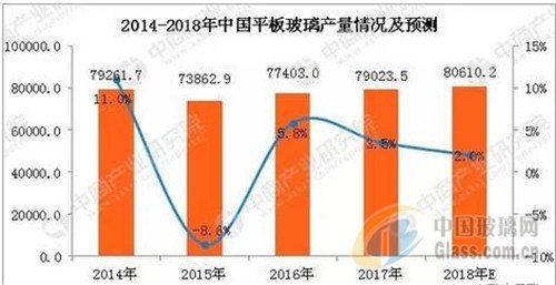 据中商产业研究院发布的?018-2023年中国平板玻璃行业市场前景及投资机会研究报告》数据统计显示,2017年中国平板玻璃累计产量为79023.5万重量箱,累计增?.5%。据中商产业研究院数据预测,预计2018年中国平板玻璃累计产量将?0610.2万重量箱,累计增长约2%、/p>