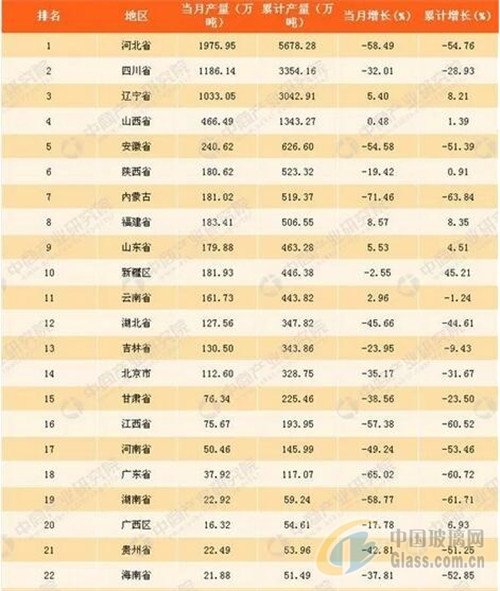 从全国各地区平板玻璃产量分析来看?018年一季度河北省平板玻璃产量很好,河北一季度平板玻璃产量?678.28万重量箱,同比下?4.76%。四川省以产?354.16万重量箱位列第二;辽宁省一季度平板玻璃产量?042.91万重量箱,位于排行榜第三。在2018年一季度全国各省市平板玻璃产量排行榜中,新疆?018年一季度平板玻璃产量累计增速很快,高达45.21%、/p>