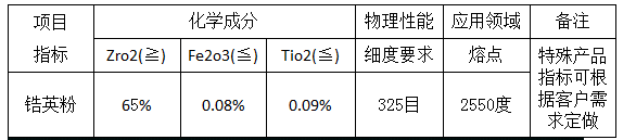 锆英粉用于熔模铸造业中的铸型涂料及陶芯。锆英粉在陶瓷工业中既作为主体材料,也用于上釉,使制成的陶瓷器增加耐磨性和表面光洁度。锆英粉在许多化学工业中具有专门的用途,包括化妆品、仪器防腐、制革、纤维等、/p>