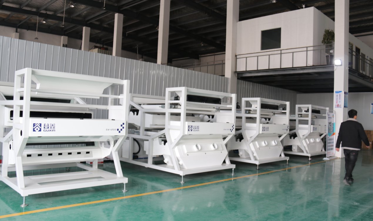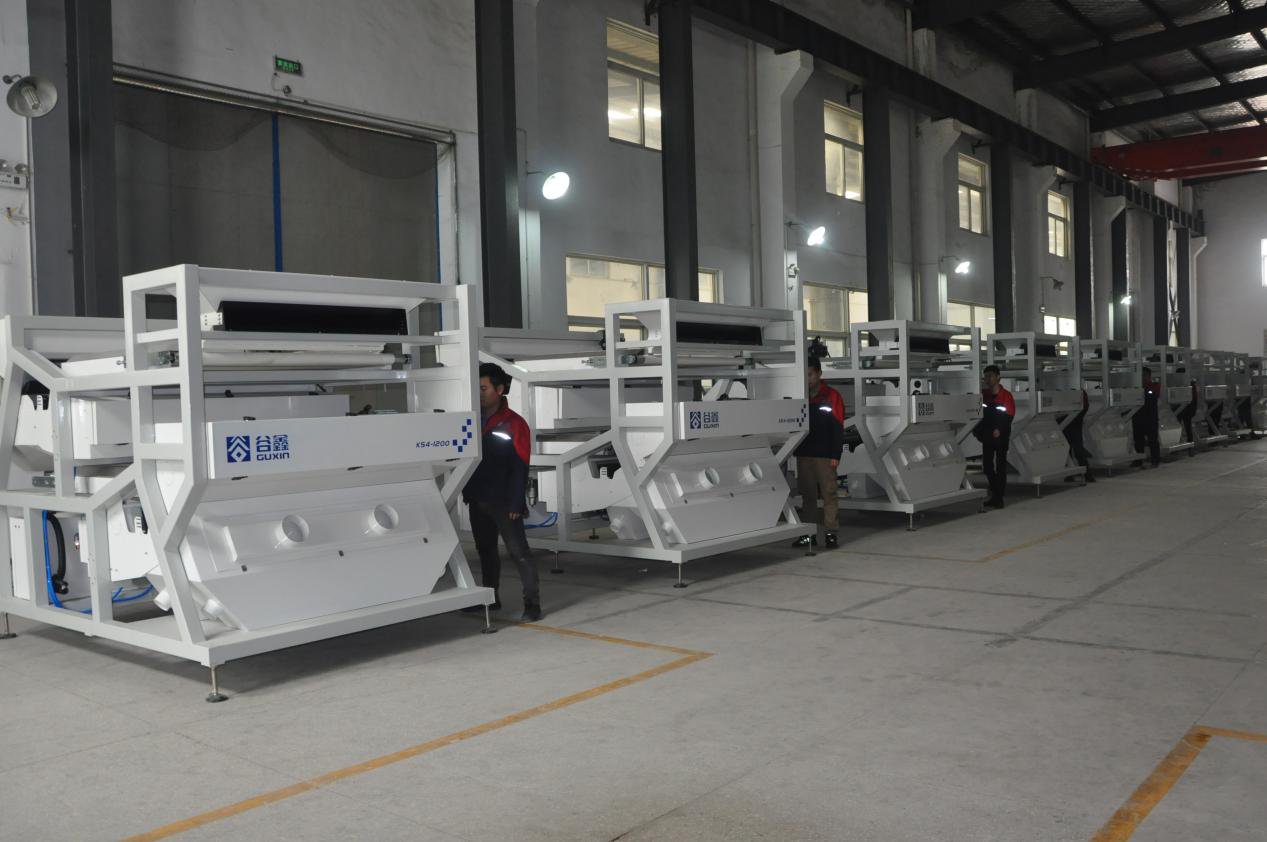 整装待发的“谷鑫”牌矿石色选机生产车间1