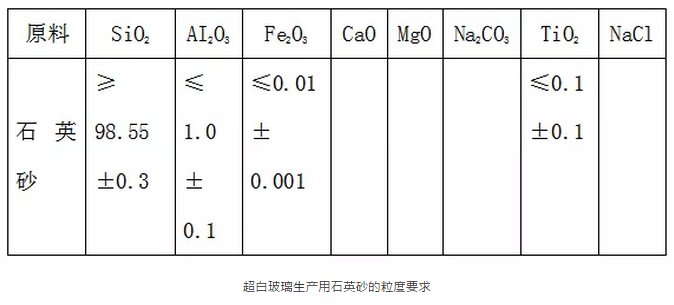 超白玻璃的基本原料是石英砂,但是对英砂质量要求非常高,尤其对铁的含量要求非常严苛。铁含量超标时,石英砂熔制过程中的热力学不易控制,将严重影响玻璃制品的透光性、br/>