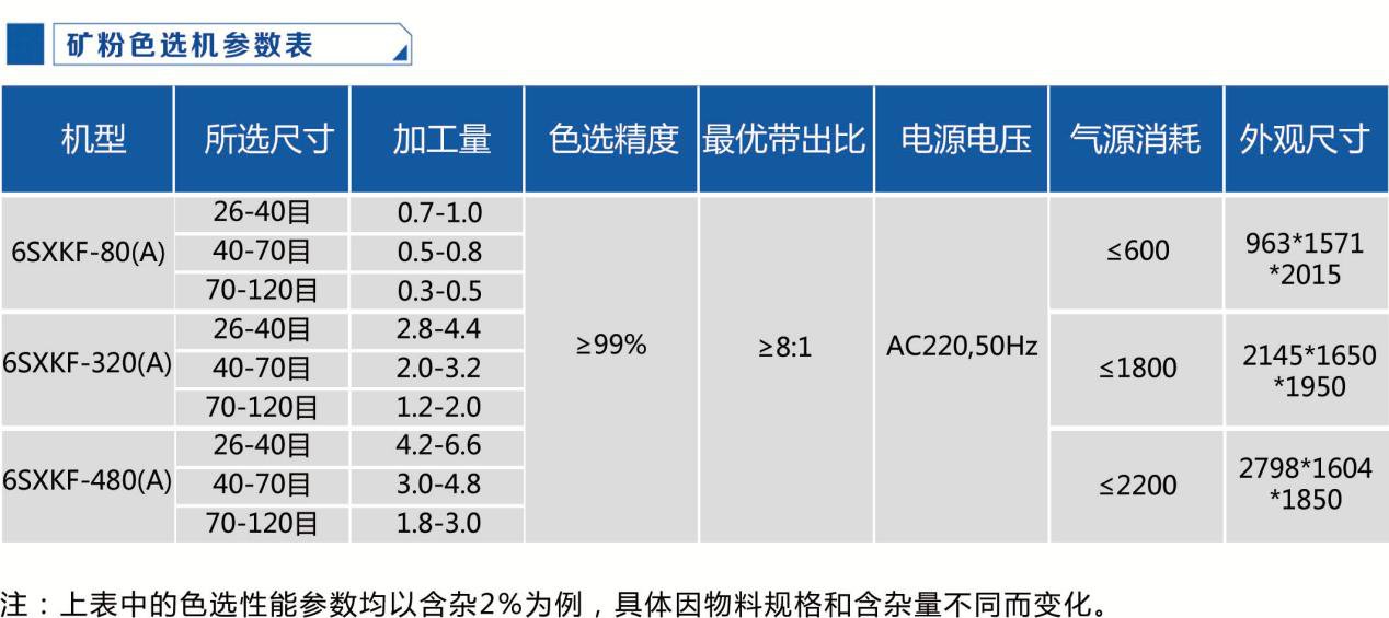 矿粉色选机参数?br/>产品特点:细小颗?0-70目?0-120?br/>