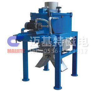 MJT-DF系列电磁干粉高梯度磁选机是我公司专门针对干粉物料研究开发的一种新型除铁设备,是矿山、耐火材料、陶瓷、玻璃、化工、石英等行业的高纯除铁设备,能除去小颗粒或粉状非磁性原料中的铁磁杂质。其效果达到国内外同类产品领先水平。采用油水复合冷却,磁场强度高达30000GS,吸力强大,抓捕力强,不仅可以将原料在研磨过程中产生的机械铁基本除净?除铁效果高达98%),而且一般永磁除铁设备难以去除的原矿中氧化铁(Fe2O3)也可以除去一部份,除铁效果卓越、/p>