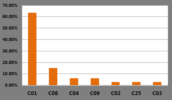 C?C01(无机化学)2018国内公开专利多达21件,占C部总专利数?3.6%、span style="color: rgb(192, 0, 0);">C部中有关硅微粉制备(C01B33)的专利数量占比高达95%、/p>