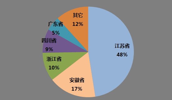 江苏省占据了硅微粉专利的绝对数量,约占据2018年硅微粉专利的半壁江山。其次是安徽省、浙江省、四川省,占比分别为17%?0.2%?.5%、/p>