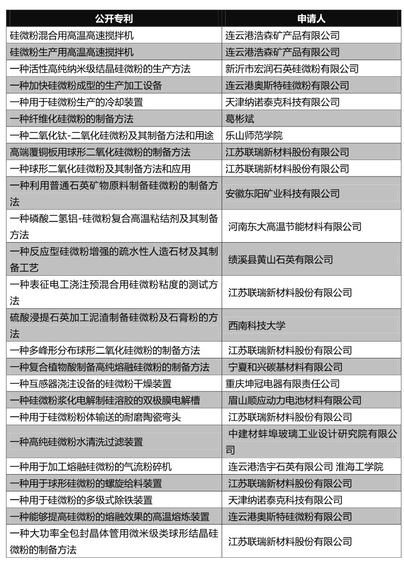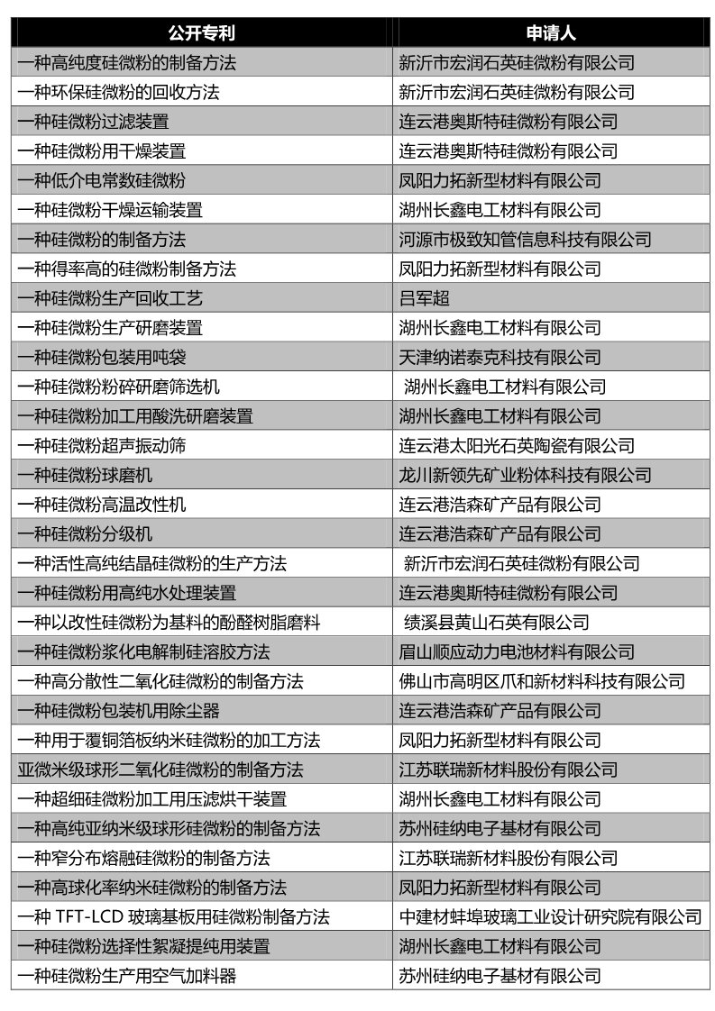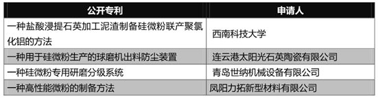 ?018年我国公开的硅微粉专利