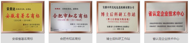 公司全面通过了质量管理体系认证、环境管理体系认证、职业健康管理体系认证,“安美达”系列产品通过了欧盟CE认证。严格的质量管理体系保障了公司产品和服务的质量,在全国乃至世界打响了“安美达”品牌。“色选,我们无处不在”是中科光电对于色选技术的追求和承诺。“安美达”牌系列智能色选机占领中国30%以上的市场份额,并成功远销数十个国家和地区、/p>