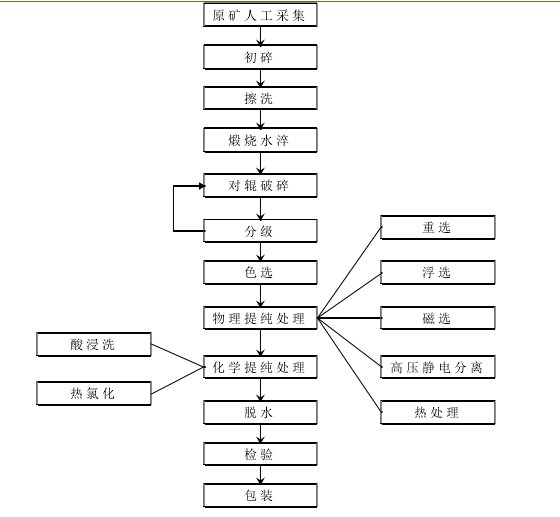 针对不同形式的铁杂质,选用以下不同选矿提纯方法9/p>