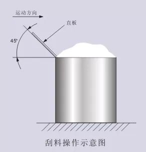 将测量量筒放到平台上,将平台调至水平,将阻塞棒插到漏斗中以堵住流出口,并保证阻塞棒处于直立状态。将待测粉体装满盛样量筒后全部倒入漏斗中,然后拔出阻塞棒,使粉体通过漏斗流出口流到测量量筒中,当粉体全部流出后取出测量量筒,用刮板刮平后放到天平上称量、/p>