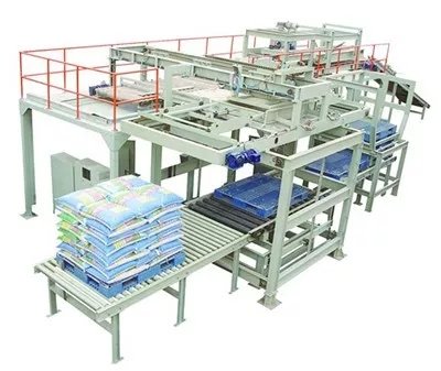 全自动高位码垛机一般是跟全段的全自动包装机配套使用,一般是作为一个全自动上袋、自动称重、自动折边封口,重量检测、金属检测、超差剔除机械、自动整袋机构、倒袋导袋导入输送、包装袋调姿、包装袋分组、码放编组、升降机构组成自动包装码垛生产线、/p>