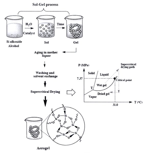 干燥工艺:凝胶中的液体分散介质要从孔洞中干燥气体才能形成二氧化硅气凝胶、/p>
