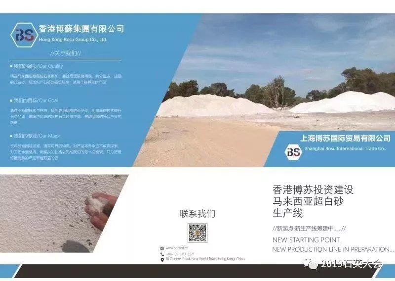 香港博蘇集團有限公司(上海博苏国际贸易有限公司)是一家以科研、生产、贸易为一体的硅产品原料加工企业。我公司致力于石英原料的研究与开发,从石英源头抓起全球范围内寻找优质石英原矿,主要生产超白石英砂,服务领域涉及照明、光伏用石英材料等、/p>