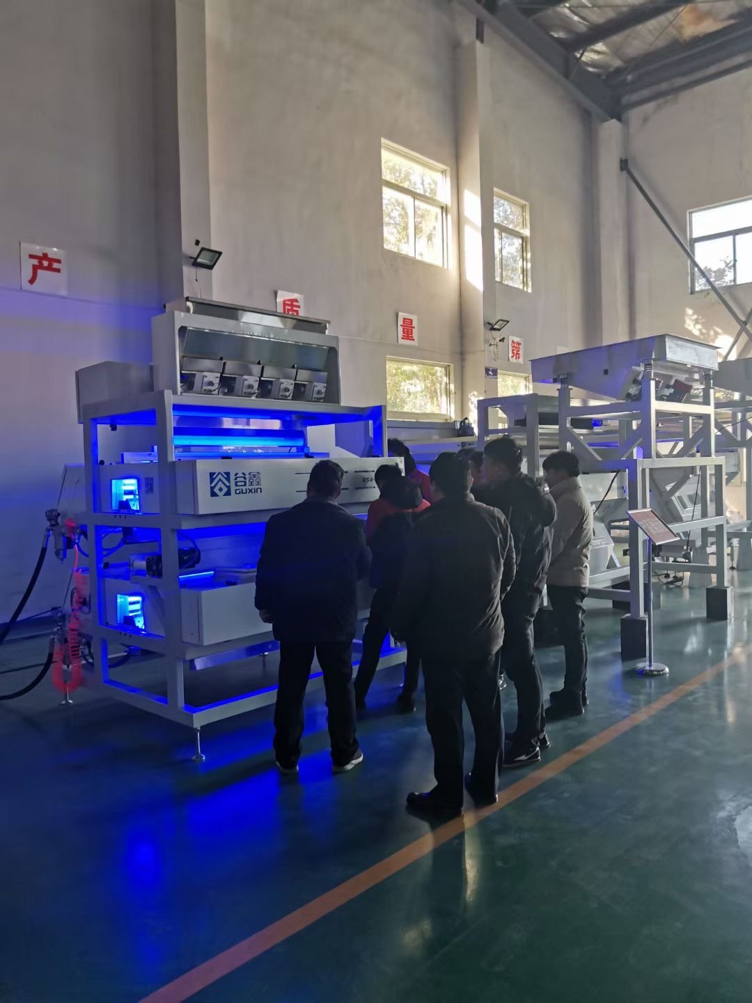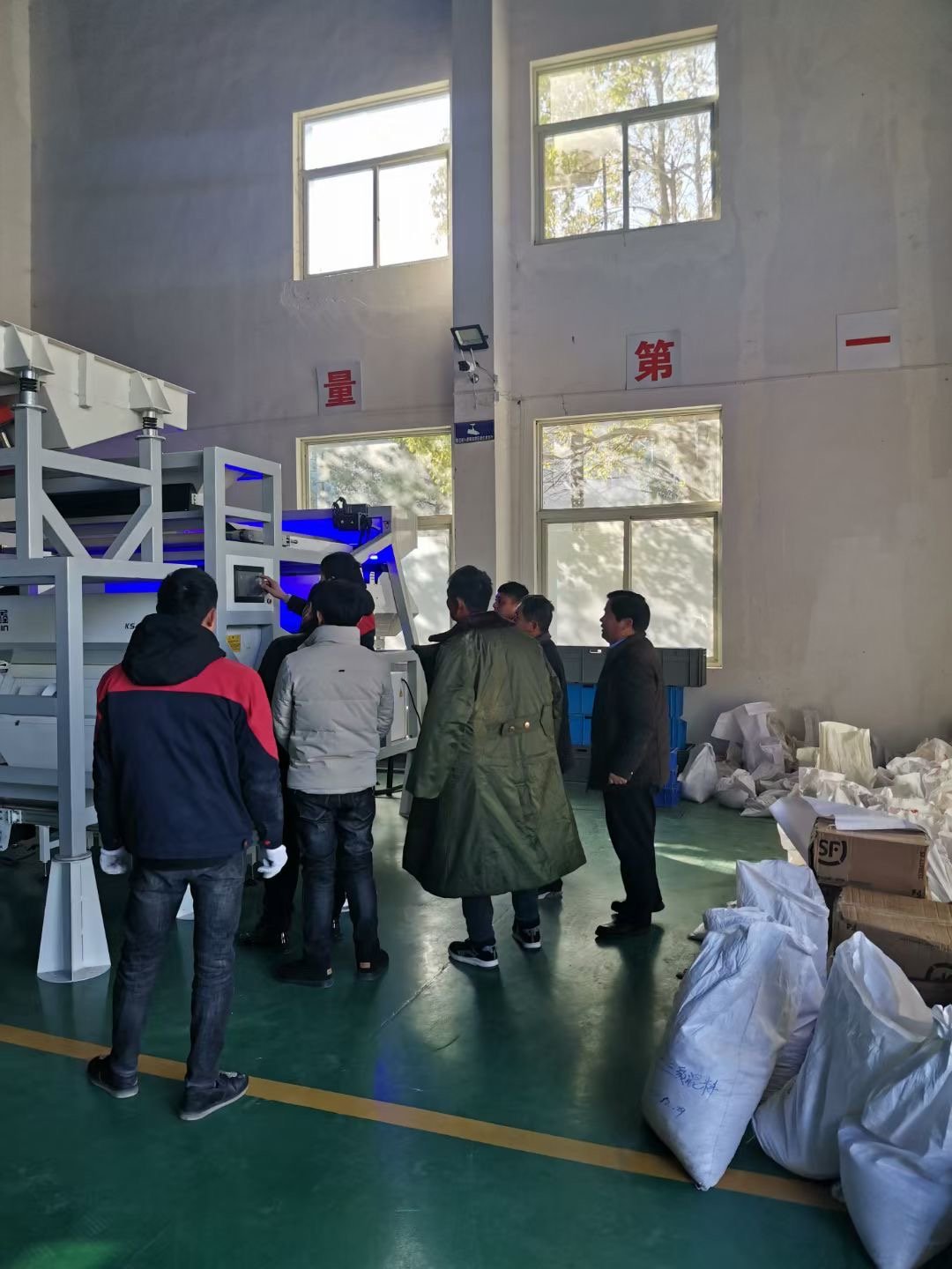 谷鑫工作人员å‘客户演示色选机æ“作æµç¨‹