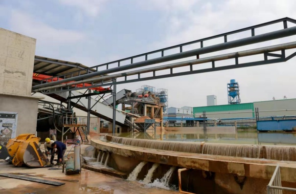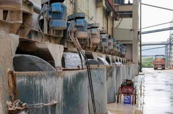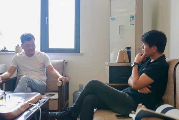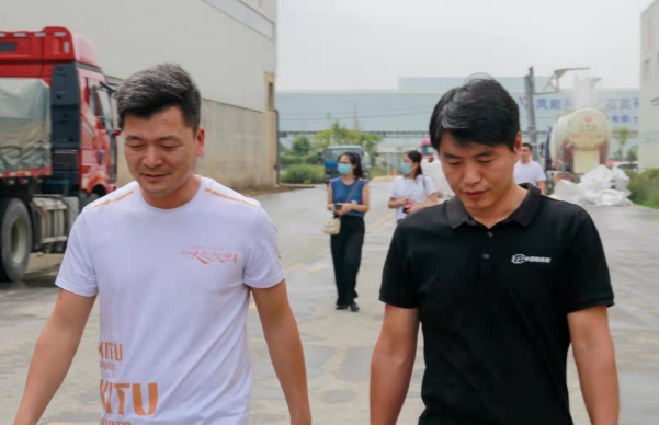 昌荣粉体张总(左)与宋总交流公司石英砂生产情况