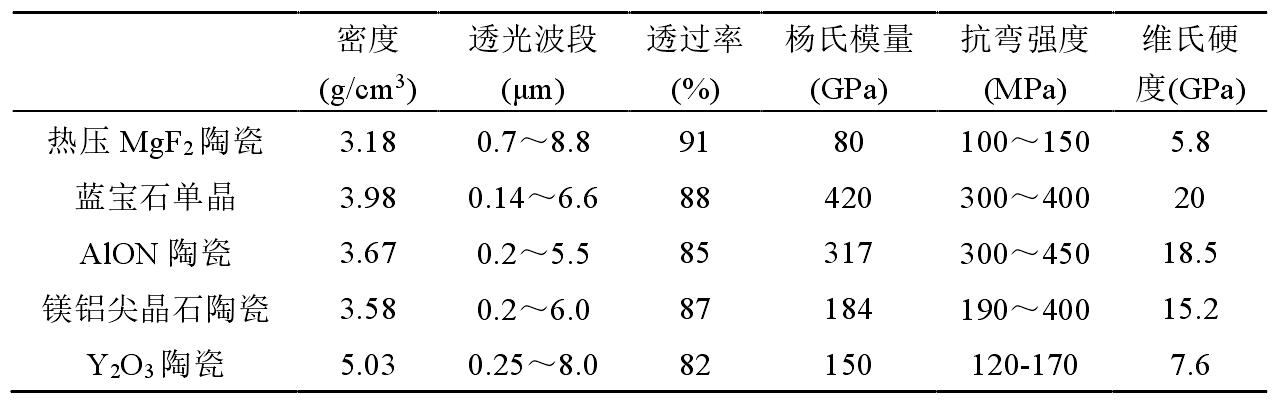 ▲常用中红外透明材料的性能参数(来源:韩丹.镁铝尖晶石透明陶瓷的制备与性能研究(/span>
