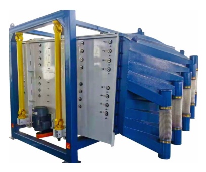 直线筛分机。在产量和筛分精度要求都不大时才会选用,筛网寿命比较短,更换筛网麻烦,逐渐退出石英砂的筛分生产、/p>
