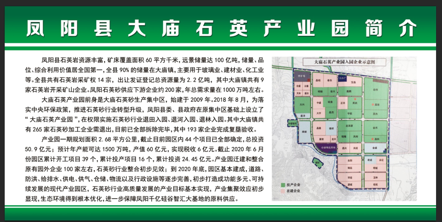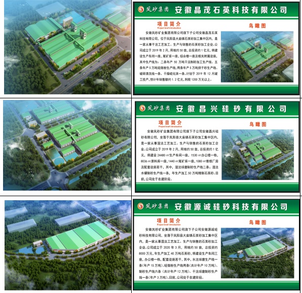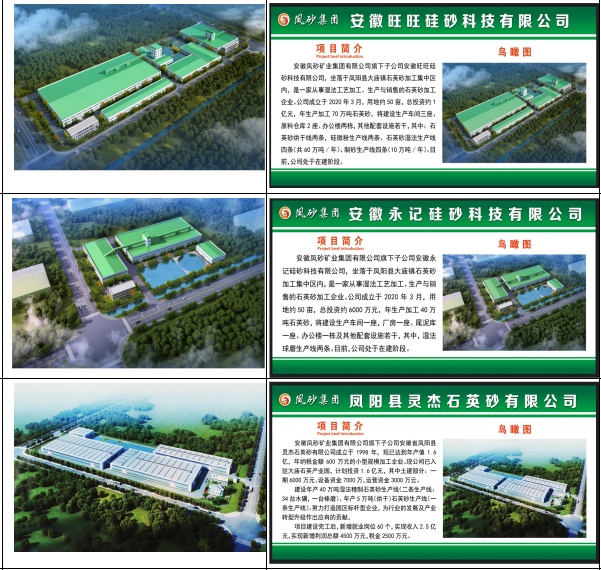 近年来,凤砂集团在当地政府“绿水青山就是金山银山”精神的指引下,下大决心、花大力气,对生产经营中的子公司及在建中的子公司,严格按照政府要求,实行科学立项、规范建设、环保达标,并从能评、安评、控评、环评、土地、建设、环保、安监、职业病防控等方面全面接受政府各部门的监管,努力把集团下属企业打造成石英行业标杆企业,争取成为凤阳县政府对外招商引资的一张名片、/p>