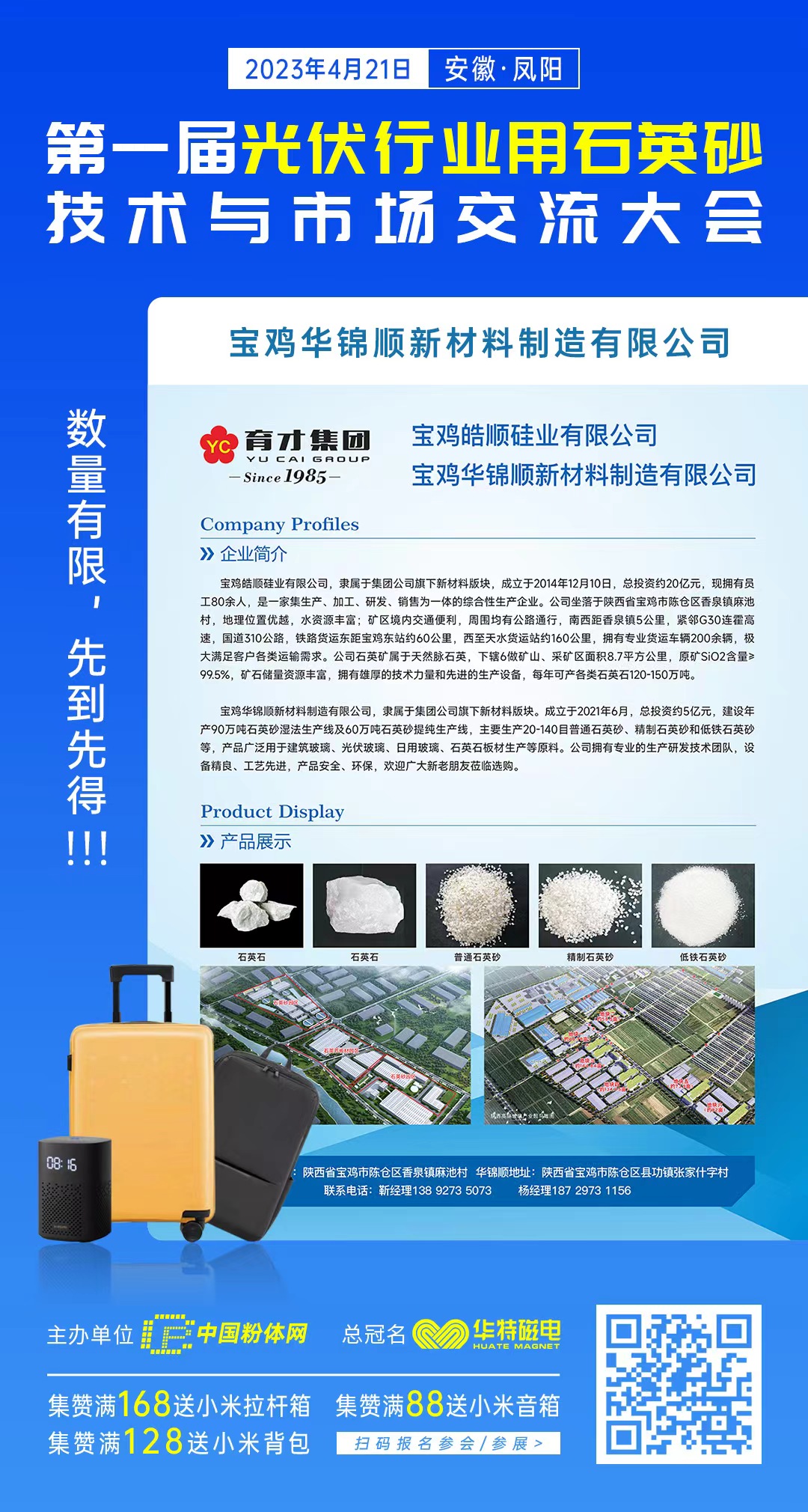中国粉体网将?023??1日在安徽凤阳举办“第一届光伏行业用石英砂技术与市场交流大会”,宝鸡皓顺硅业有限公司邀您一起参加、/p>