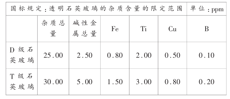 国标规定透明石英玻璃的杂质含野/span>