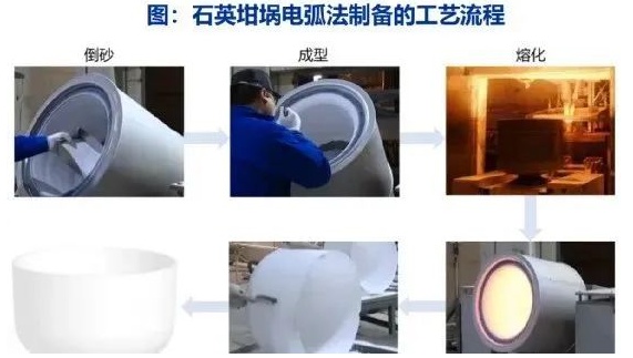 目前,电弧法是制备石英坩埚的主流制备技术。石英坩埚分为内层透明层、中层气泡复合层和外层薄气泡层,各层质量占比分别?5%-70%?0%-40%?%-30%,通常比例?:3:4或?:4:3。其中内层砂必需?N8高纯石英高端产品仍需要高价从美国、挪威等进口,而质量要求略低的石英坩埚中外层砂,其矿石原料也需要从印度等国进口解决、/p>