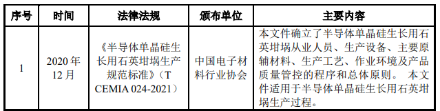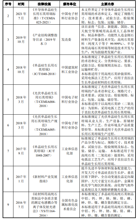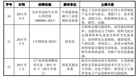 表:石英坩埚产品行业主要法规及产业政策(来源:欧晶科技招股说明书)