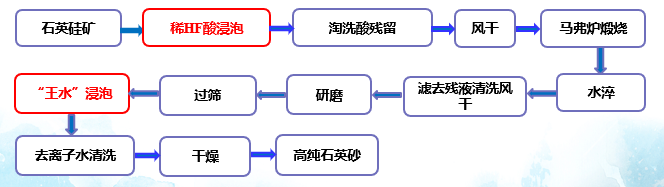 从水晶制备水晶砂,到如今石英硅矿制备高纯石英砂,其精制工艺一直采用无机强酸HF、HNO3、H2SO4、HCl等剔除Al、Fe、Ca、Ti等主要金属及气液包裹体杂质。由于HF、HNO3尤其是HF酸对生态环境和人身伤害大,其残液很难根治,环境污染严重。同时传统工艺对气液包裹体的剔除水平有限,能耗和成本高等,因此如何研究石英硅矿精制特别是破解环境污染等难题,需要做大量深入研究和卓有成效的工作、/p>