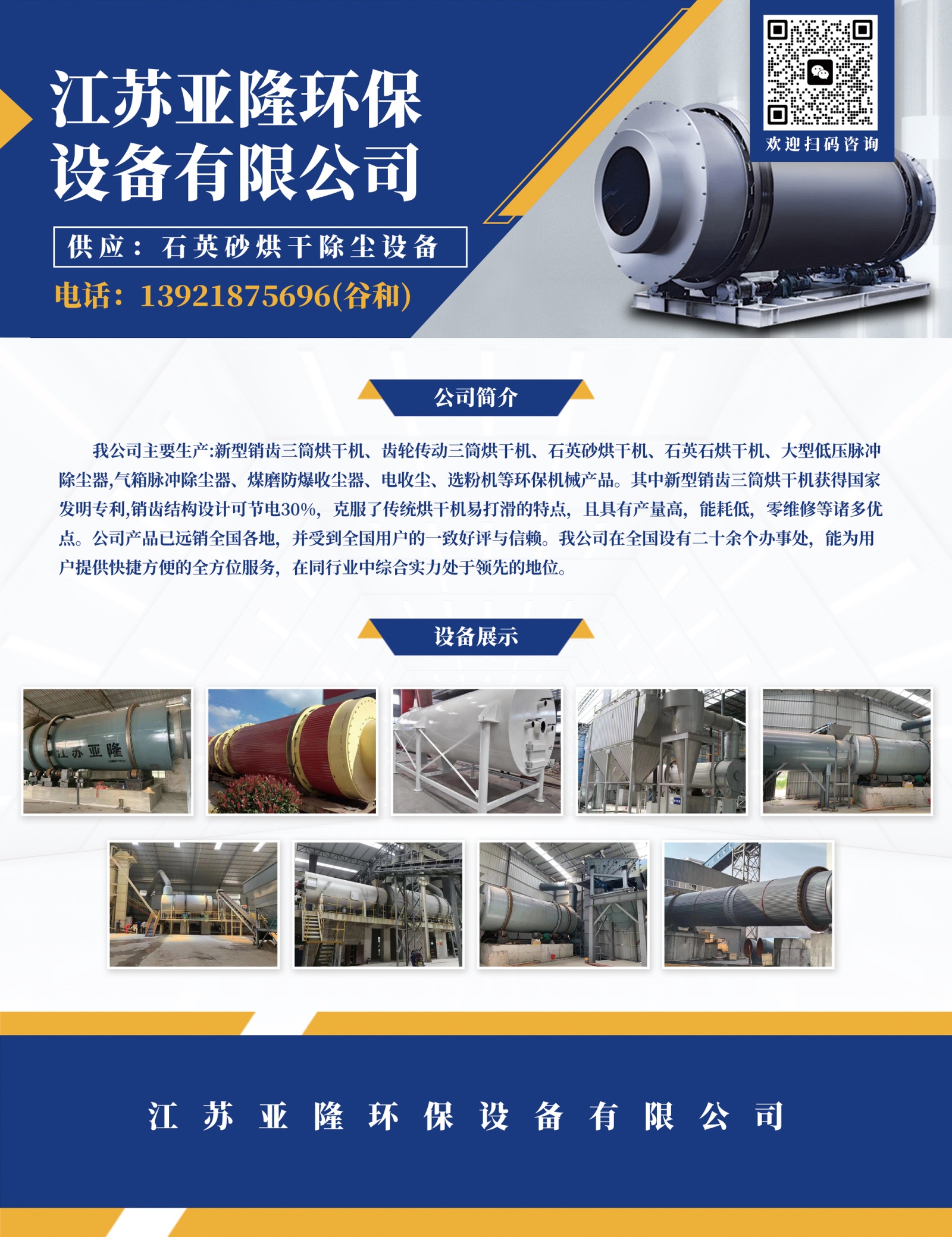 由中国粉体网主办的?023第三届全国板材用石英砂供需洽谈会”将??9号在山东临沂举办,江苏亚隆环保设备有限公司邀您一同参加、/span>