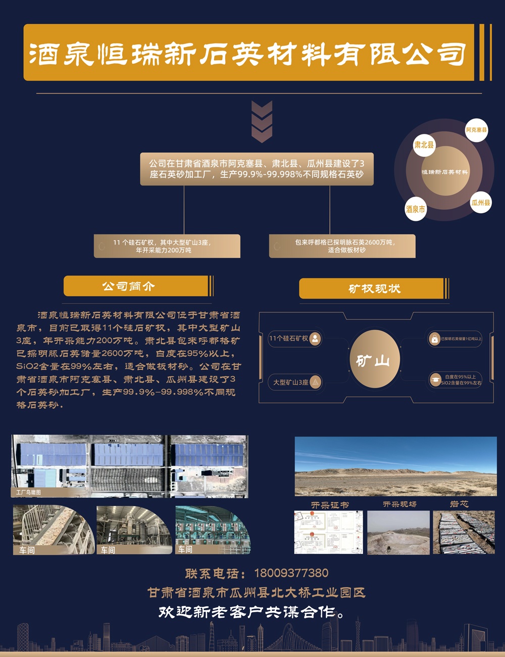 由中国粉体网主办的?023第三届全国板材用石英砂供需洽谈会”将??9号在山东临沂举办,酒泉恒瑞新石英材料有限公司邀您一同参加、/span>