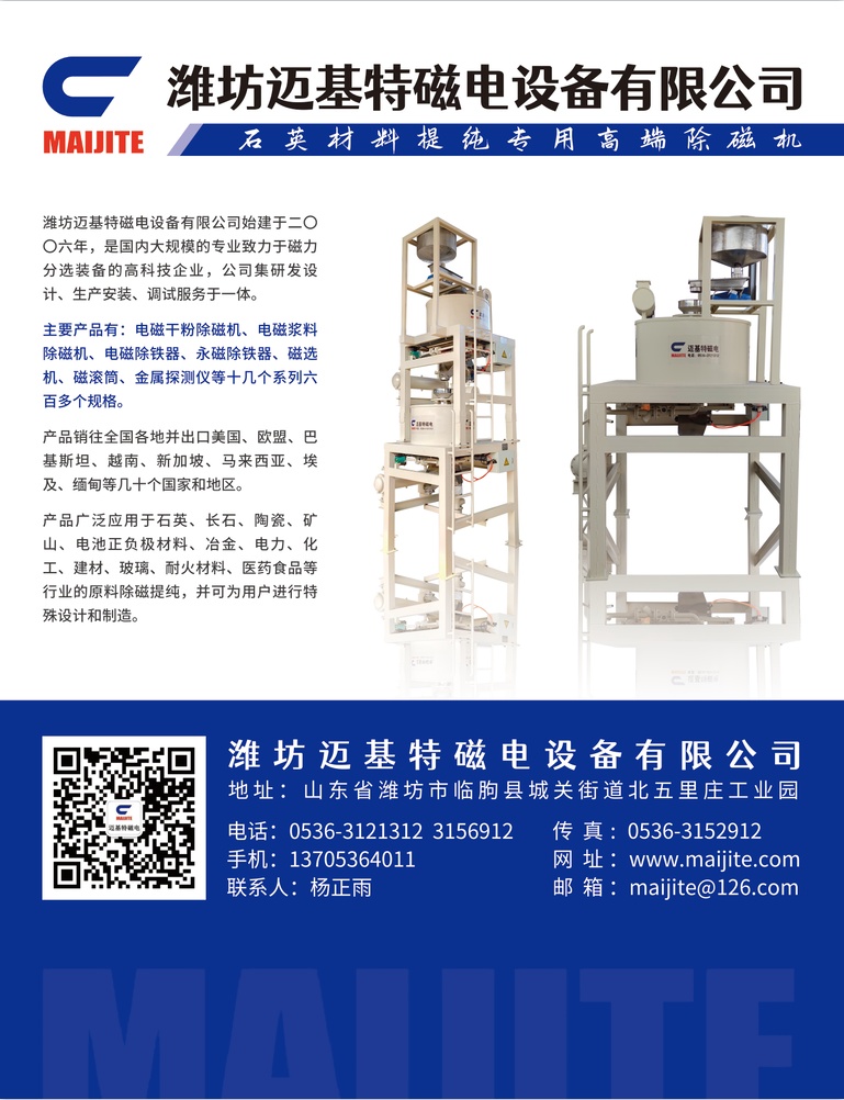 由中国粉体网主办的?023第三届全国板材用石英砂供需洽谈会”将??9号在山东临沂举办+/span>潍坊迈基特磁电设备有限公号/span>邀您一同参加、/span>