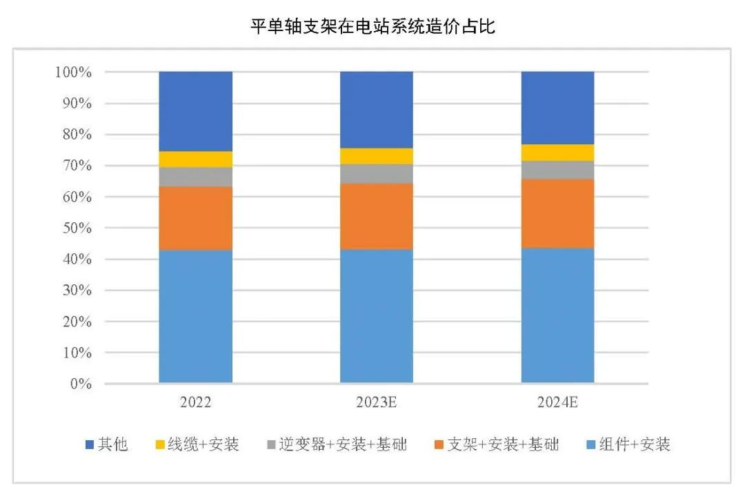 ?022年相比,2023年跟踪支架在电站系统中的占比将恢复到此前水平,未来,组件价格会呈现逐渐下降的趋势,而跟踪支架在光伏电站系统中的成本占比将增?-5%。从电站系统的国产化占比来说,组件和逆变器均已完?0%以上的国产化率,唯有跟踪支架仍处于海外厂家占据主要市场的格局、/p>