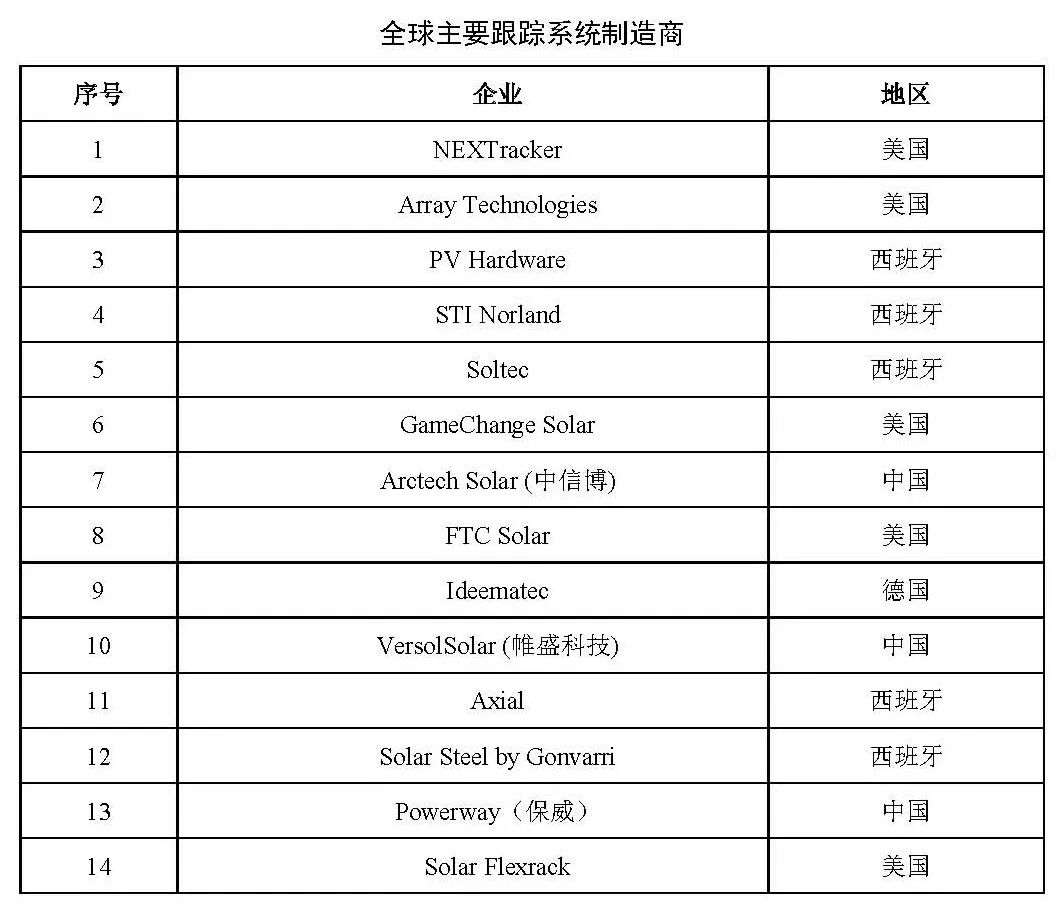 中国跟踪支架的应用可以追溯到领跑者项目,但早期的跟踪支架产品质量,可靠性层次不一,使得早期的项目故障频发,一部分业主对跟踪支架留下了较差的印象。反观海外市场,NEXTracker、Array Technologies、PV Hardware等国外龙头企业起步较早,经历了一系列测试以及技术和项目的沉淀,产品进入成熟期,长期占据跟踪支架龙头地位。从全球近年出货情况来看,跟踪支架企业更符合本地化趋势,全球出货较为领先的跟踪支架企业均聚集在美国(5家),欧洲(6家)和中国(3家)。并且,中国跟踪支架企业与国际品牌仍存在一定的差距,但伴随未来几年特高压线路,“光?”场景的植入,必将带动中国跟踪支架企业缩小与海外头部企业之间的差距、/p>
