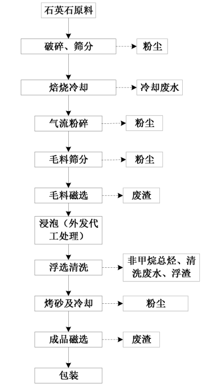 连云港昊晶新材料有限公司计划投资46000万元,新建年?2000吨半导体专用高纯石英砂项目,项目建设地点位于江苏省东海高新技术产业开发区,占?0亩,拟利用现有厂房,新建半导体专用高纯石英砂生产线。购置鄂破机、振动给料筛、焙烧炉、履带机、烘干机、磁选机、浮选机、离心机、污水处理设施等设备,采用原?石英?→破碎→焙烧冷却→气流粉碎→毛料筛分→毛料磁选→浸泡(外发代工处理)→浮选清洗→烤砂及冷却→成品磁选→包装等工艺,形成年产12000吨半导体专用高纯石英砂的生产能力、/p>