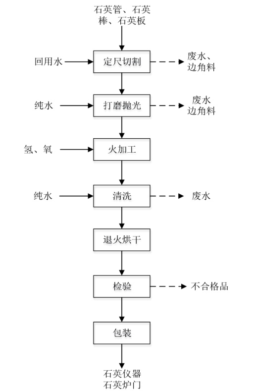 火加工:使用氢氧焰加热软化,按照规定形状进行加工成形,氢氧燃烧生成水,无废气产生、/p>