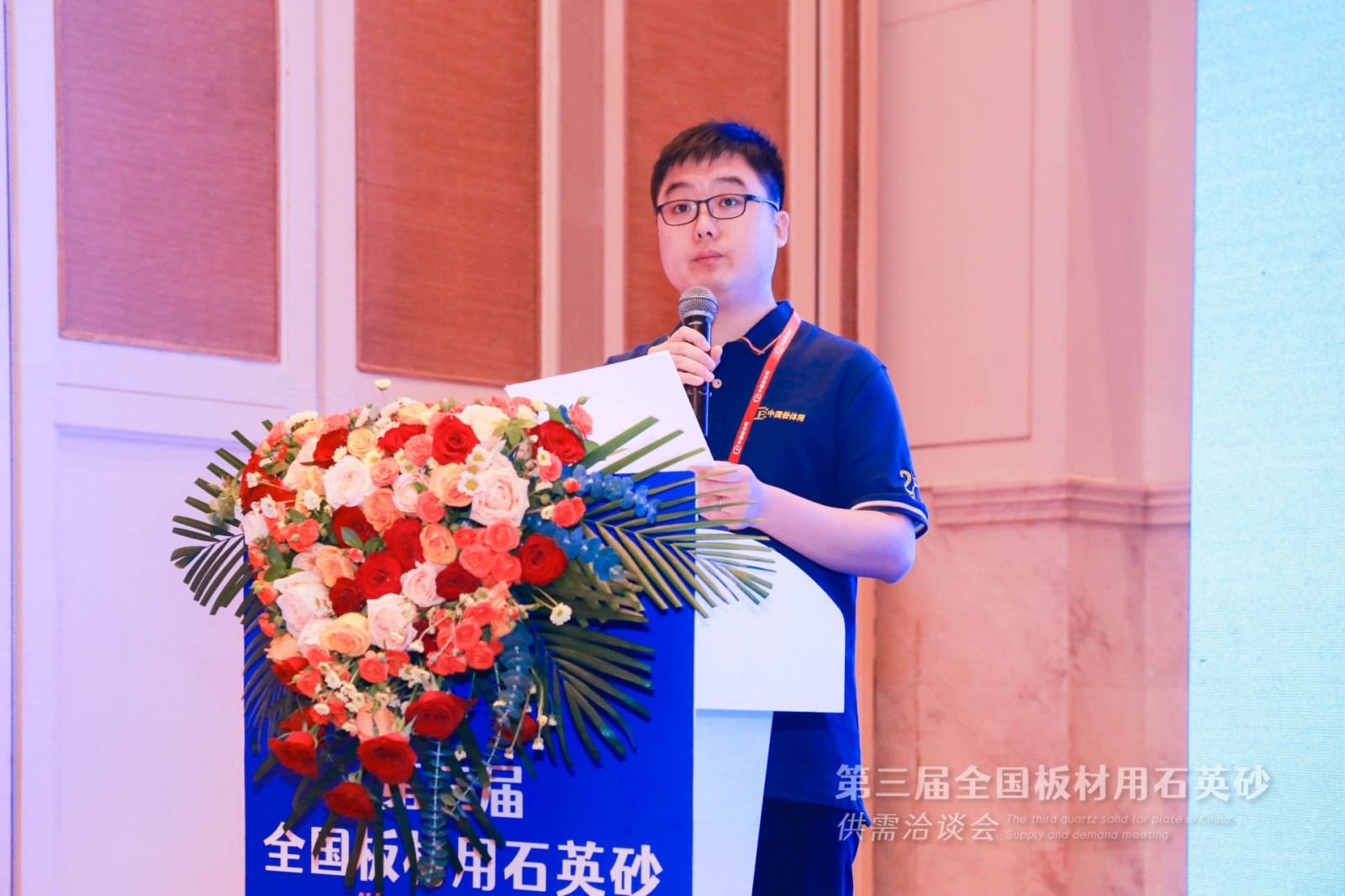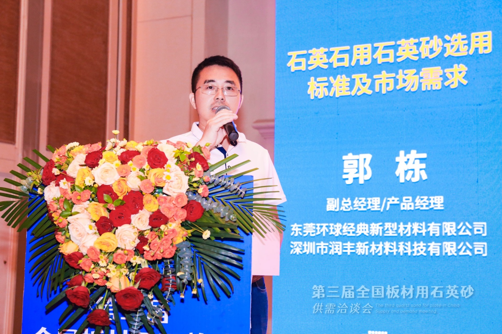 东莞环球经典新型材料有限公司&深圳市润丰新材料科技有限公司的副总经?产品经理郭栋作《石英石用石英砂选用标准及市场需求》报呉/p>