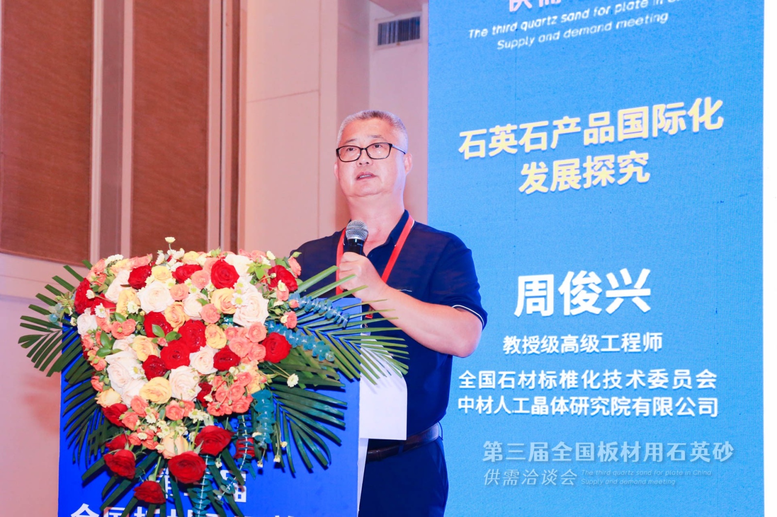 全国石材标准化技术委员会&中材人工晶体研究院有限公司的教授级高级工程师周俊兴作《石英石产品国际化发展探究》报呉/p>
