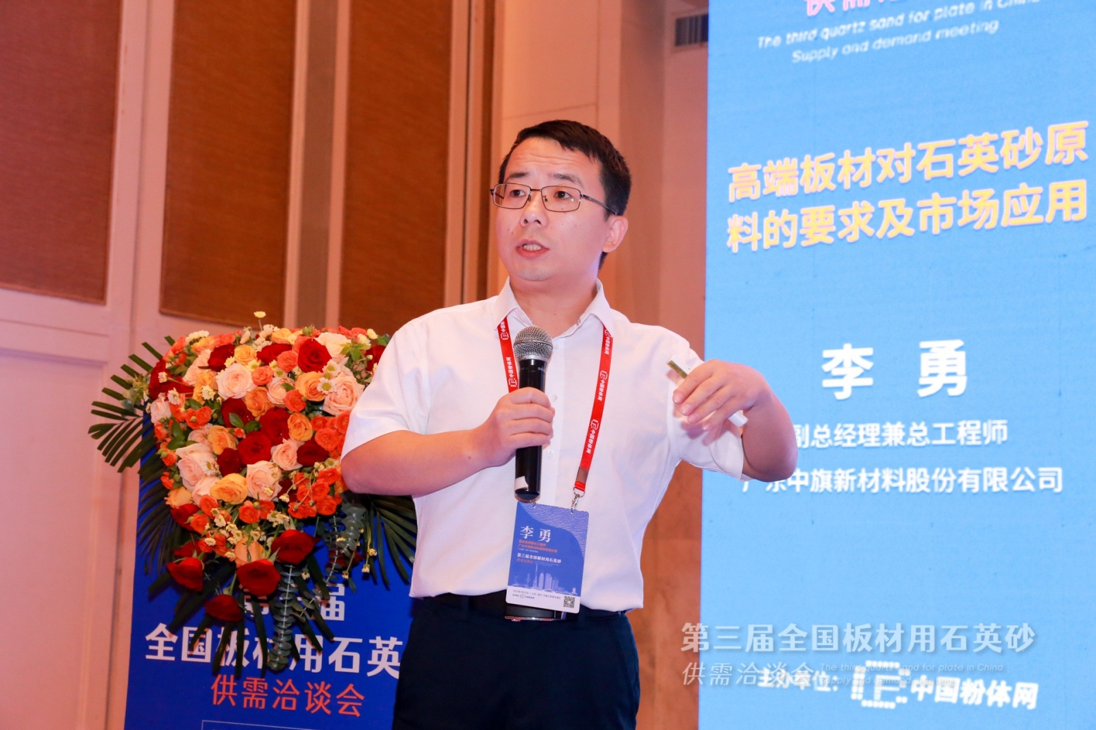 广东中旗新材料股份有限公司副总经理兼总工程师李勇作《高档板材对石英砂原料的要求及市场应用》报呉/p>