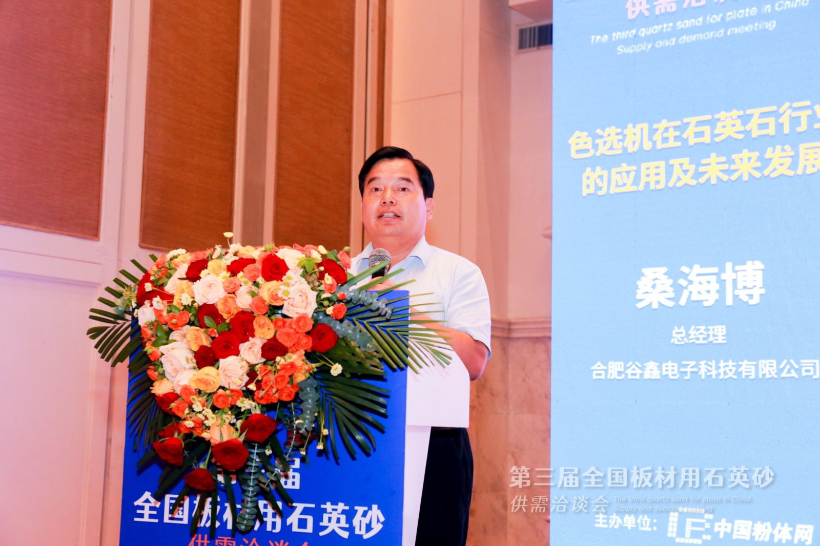 合肥谷鑫电子科技有限公司总经理桑海博作《色选机在石英石行业的应用及未来发展》报呉/p>