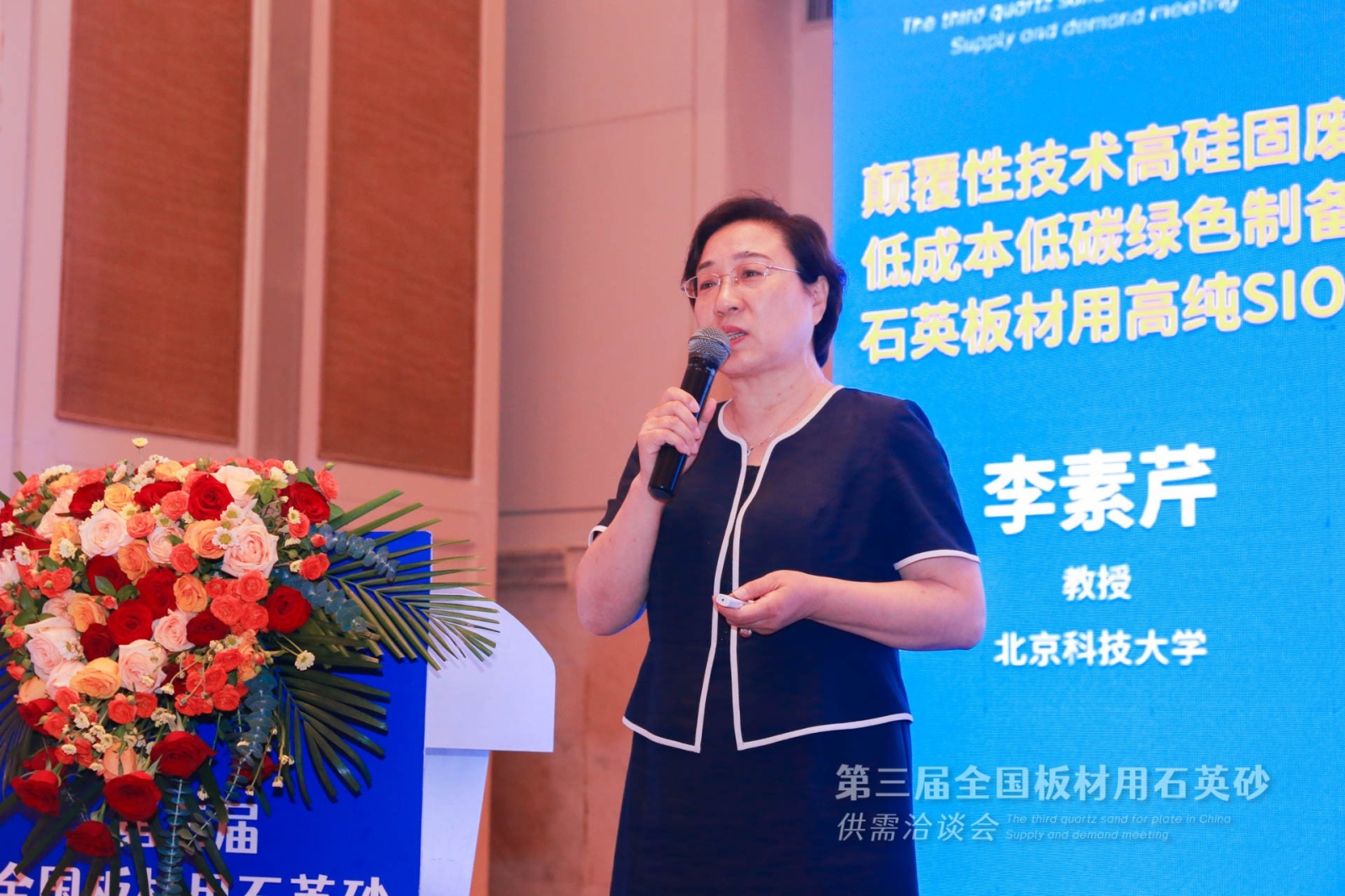 北京科技大学李素芹教授作《颠覆性技术高硅固废低成本低碳绿色制备石英板材用高纯SiO2》报呉/p>