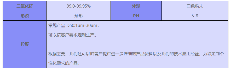 公司成功开发了高球形率、高纯度的球形硅微粉,颗粒大小亚微米到数十微米可控,分布狭窄,产品作为填充料,成功地应用于电子封装材料EMC、CCL等领域,可以极大提高材料的耐磨、耐侯、抗冲击、抗压、抗拉、阻燃、耐电弧绝缘和抗紫外线辐射等特性。该技术已获得发明专利、/p>