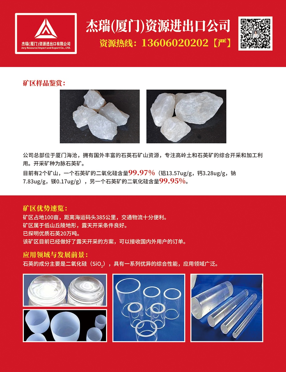 由中国粉体网主办的?023全国集成电路及光伏用高纯石英材料产业发展大会”将??5号在东海举办+/span>杰瑞(厦门)资源进出口公号/span>邀您一同参加、/span>